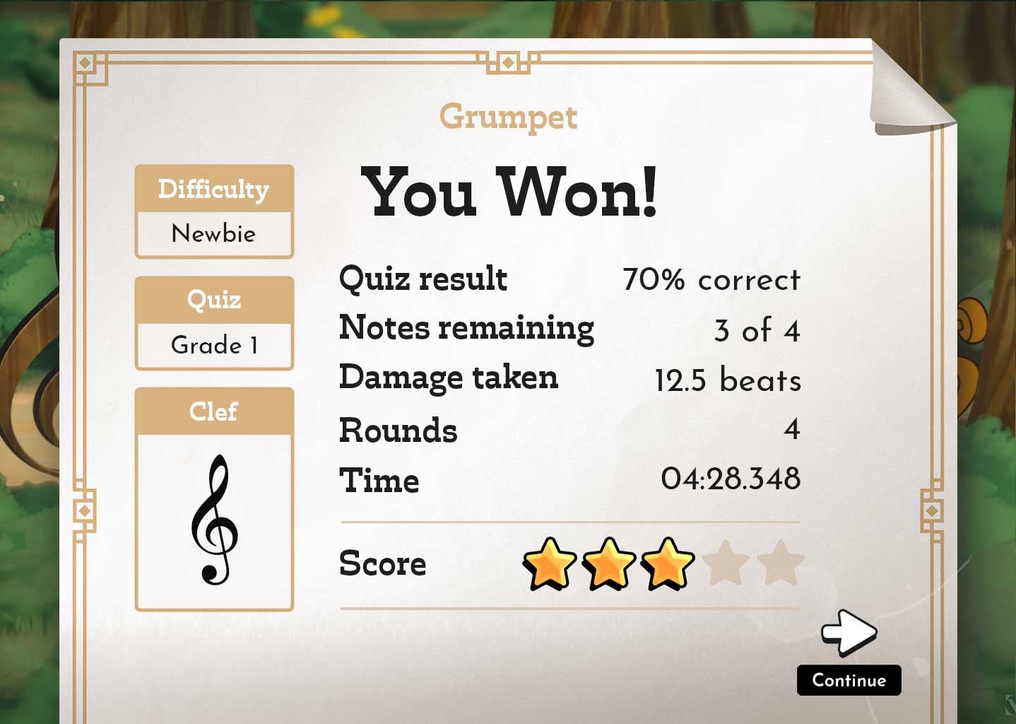 NoteWorthy uses the language of games to teach the language of music, providing a low friction experience for young learners as they practice reading notes on the stave, as well as reinforcing other basic music theory concepts through play.